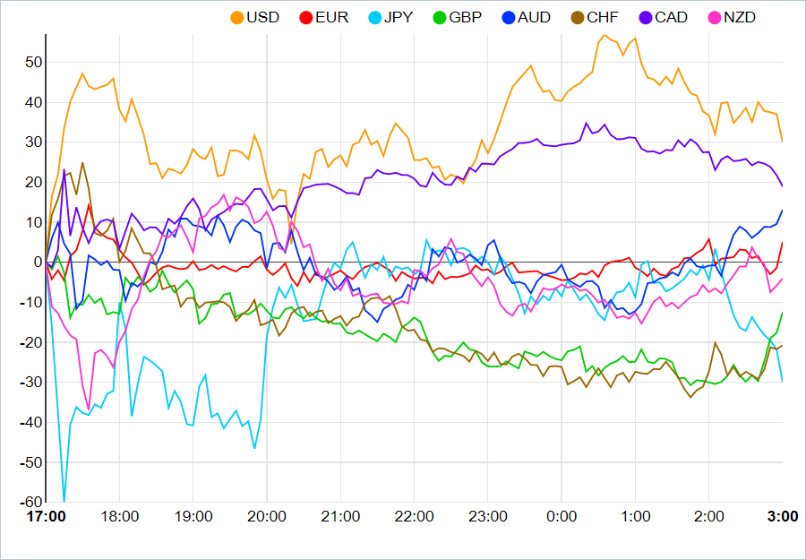 Currency Strength Chart: Strongest - USD, Weakest - JPY.