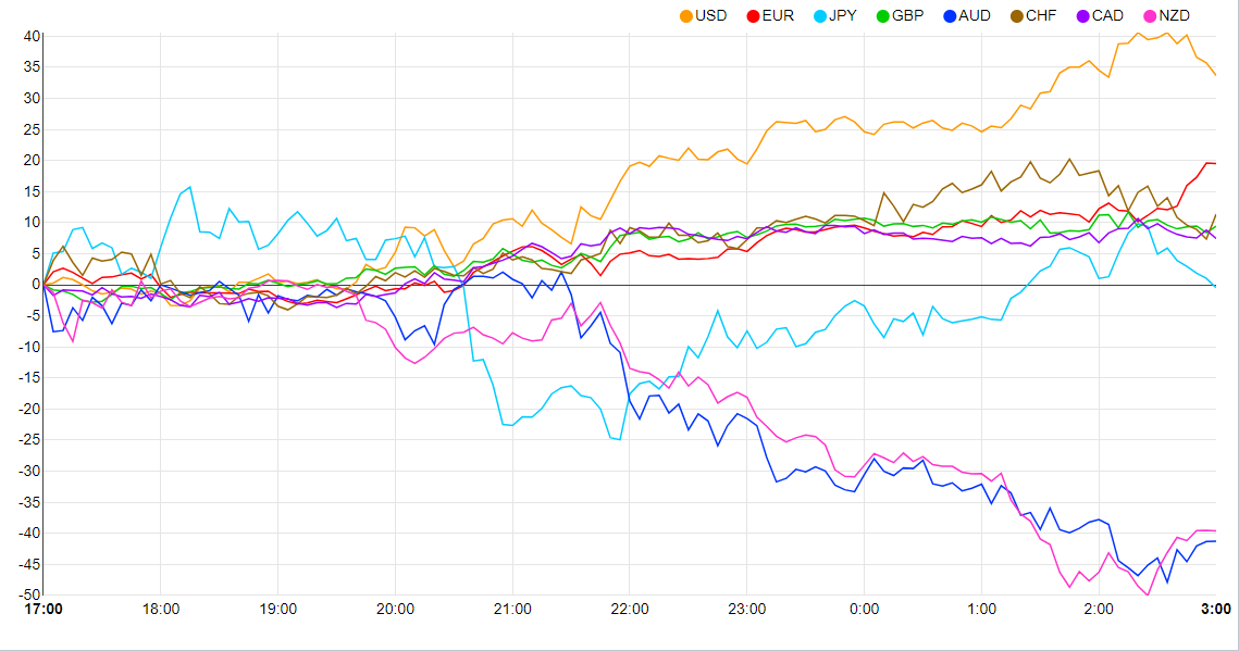 Currency Strength Chart: Strongest - USD, EUR, CHF, GBP, CAD, JPY,, NZD, AUD - Weakest.