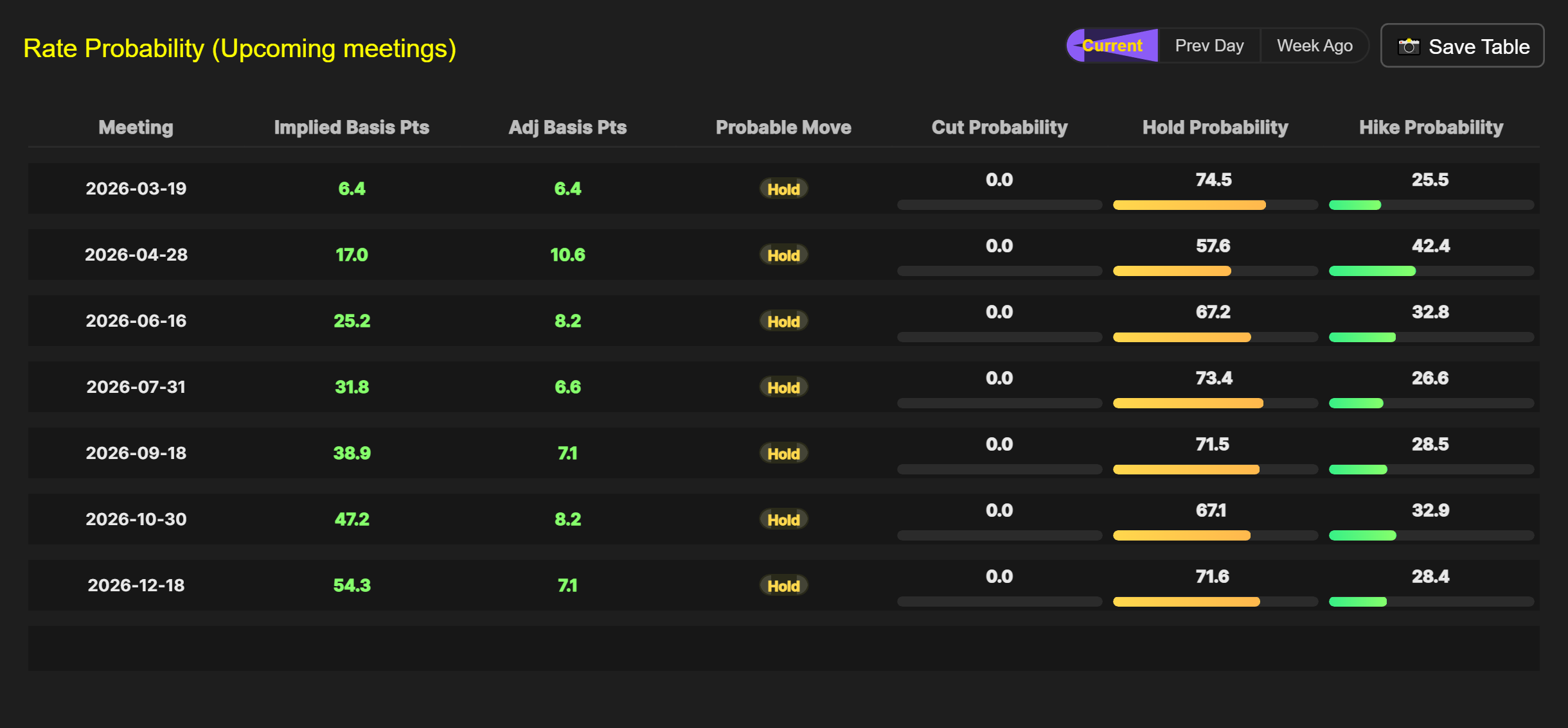 Implied interest rate probabilities for the BoJ