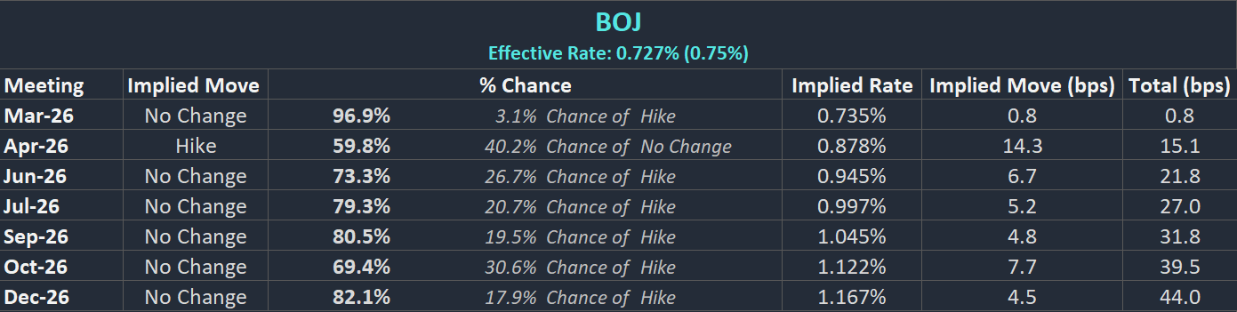 BoJ Interest Rate Probabilities