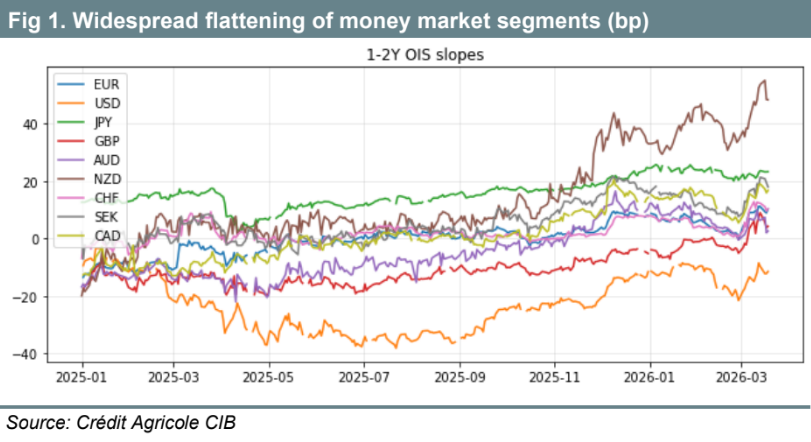 Stable energy prices are a key factor to move away from pure energy inflation expectation chasing a more composed search for the new equilibrium. While energy prices remain elevated, their volatility has declined, providing support for short-dated contracts across most G10 currencies (Figure 1). We maintain that the cumulative nature of this supply shock will prevent significant repricing until there is any clarity on the duration of the war in Iran. However, with positioning constraints no longer a major factor, pricing should begin to better reflect the range of possible scenarios rather than binary outcomes driven solely by energy prices. This creates an opportune window to address curve distortions, though it is premature to establish strong directional bets.