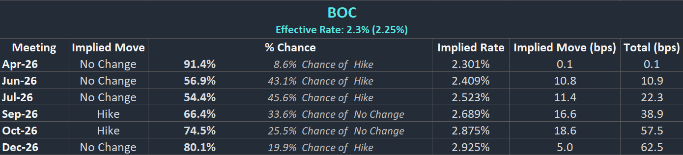 BoC Interest Rate Probabilities