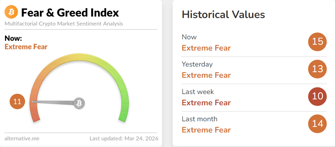 Crypto Fear & Greed Index: 11/100 - Extreme Fear