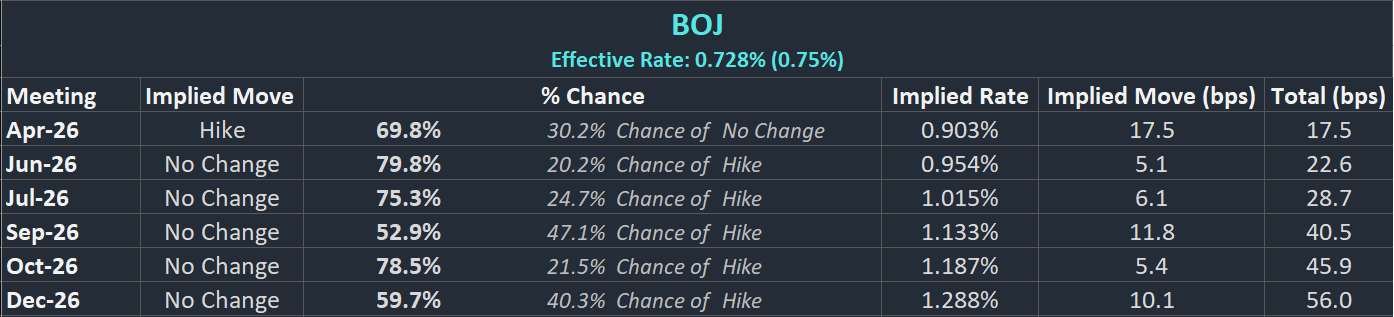 BoJ Interest Rate Probabilities