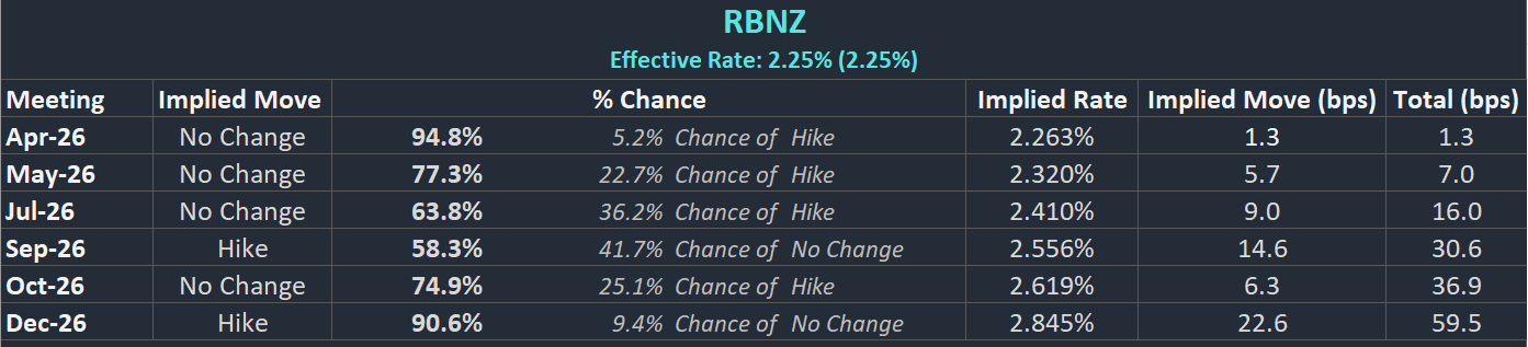 RBNZ Interest Rate Probabilities