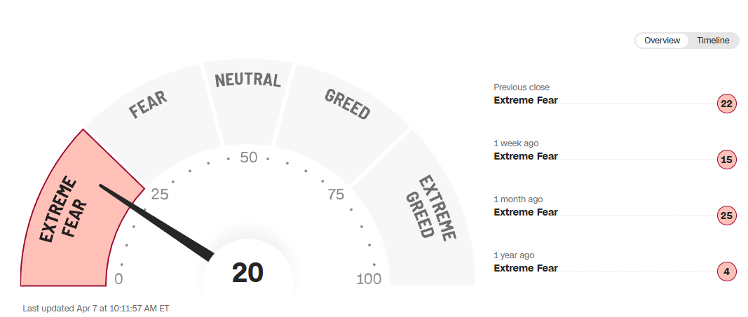 Fear & Greed Index: 20/100 - Extreme Fear