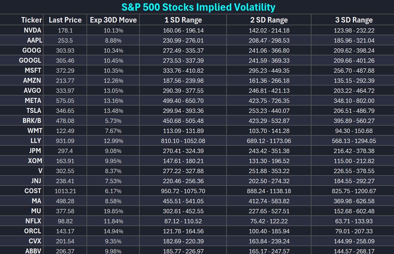 Top S&P 500 Stock Names Implied Volatility