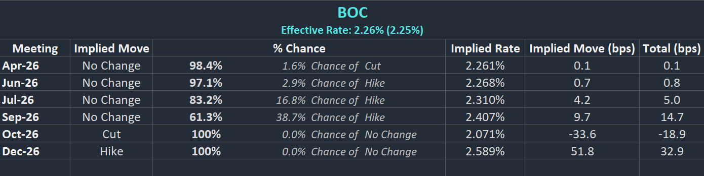 BoC Interest Rate Probabilities