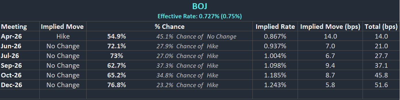 BoJ Interest Rate Probabilities