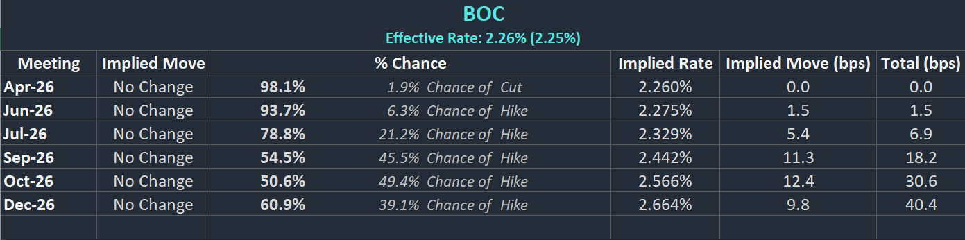BoC Interest Rate Probabilities
