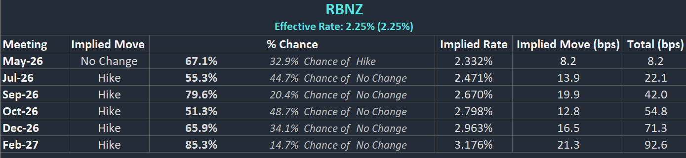 RBNZ Interest Rate Probabilities