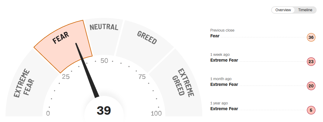 Fear & Greed Index: 39/100 - Fear