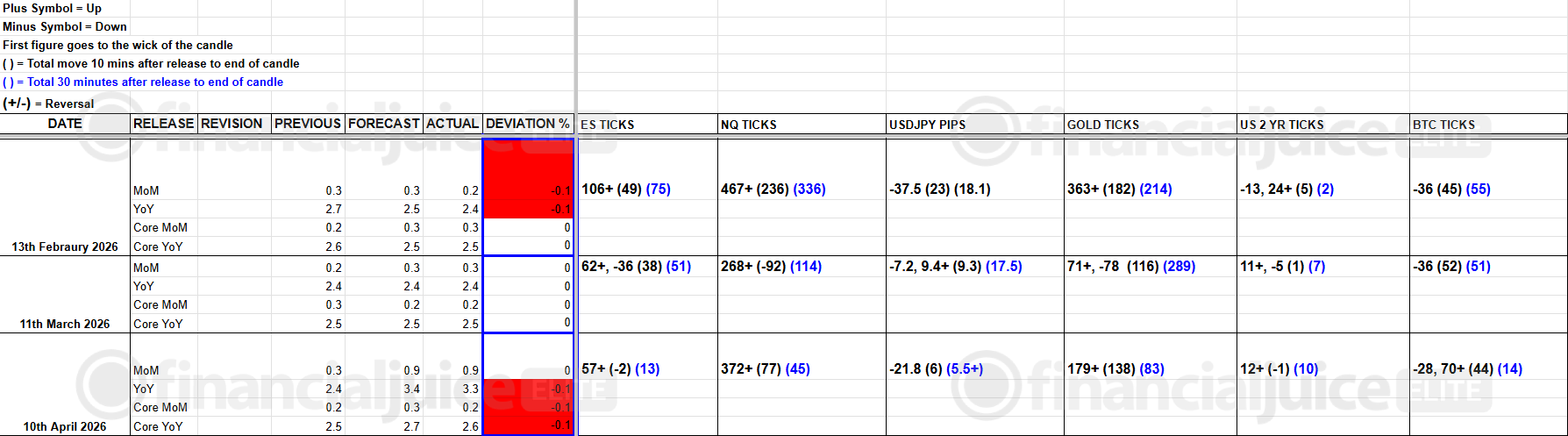 US CPI Market Reactions & Deviations - FJElite